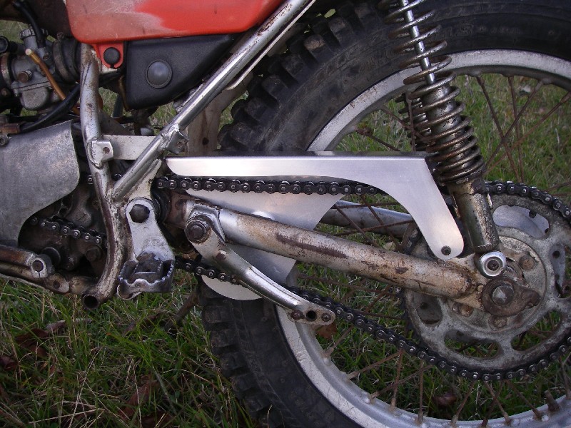 PA has kindly reduced photos of TY175 B&C chainguard so we can upload. Before all of you TY fanatics correct me, yes it si a TY175JC frame with a B model swingarm as I like the stand on that side. I use one piece of 2mm aluminium and deburr all edges for $45.00 plus postage. I also have a model for JC & JE with more mounting points and one for Alpina.