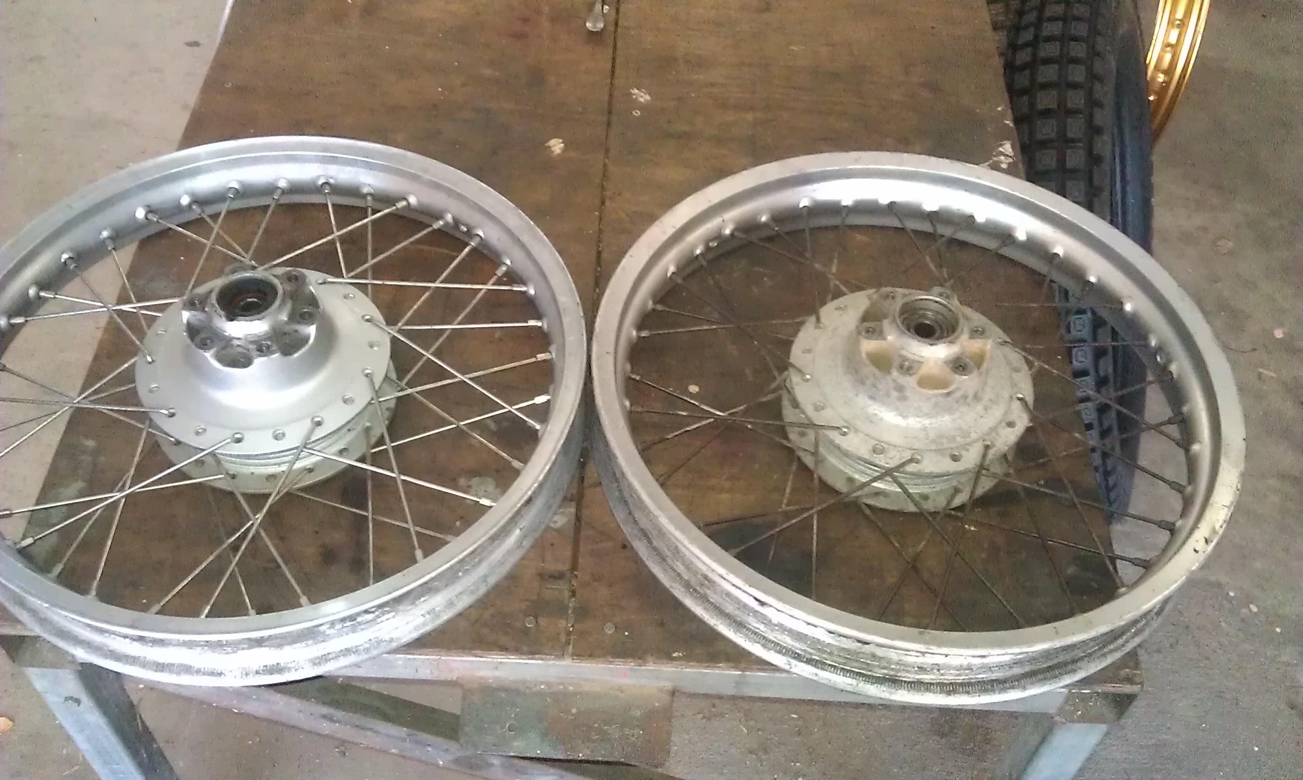 Advice from people who have successfully used those tyres on tube type rims was heeded. Greg Harding recommends using the rear rims that came on the Yamaha TY250A, and Tricub has previously explained that reshaping the bead seat on one of his bikes did the trick.