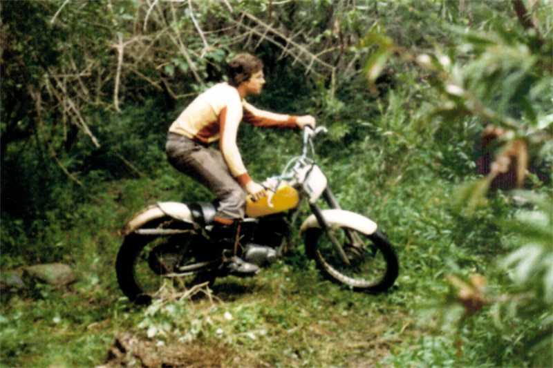 The B&W photo is me on my recently acquired second-hand TY175B in 1976 at Ron Boyles "upper" Lacey's Creek property near Dayboro, the afternoon before a Northern Districts Motorcycle Trials Club trial. I was 17 years old and dead keen on mastering wheelies. Photo by John Heidemann.