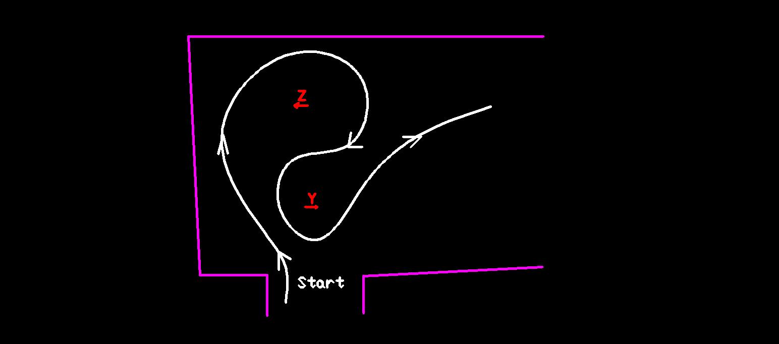 Y is closer to start than Z.