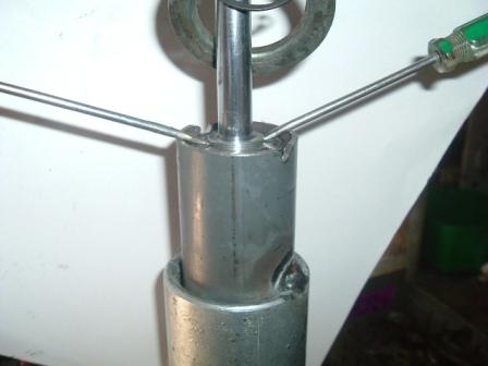 2/ Install the Pipe tool , a tight fit washer and then a 1 1/4 (32mm) circlip ground down on one side ( A little difficult to install)