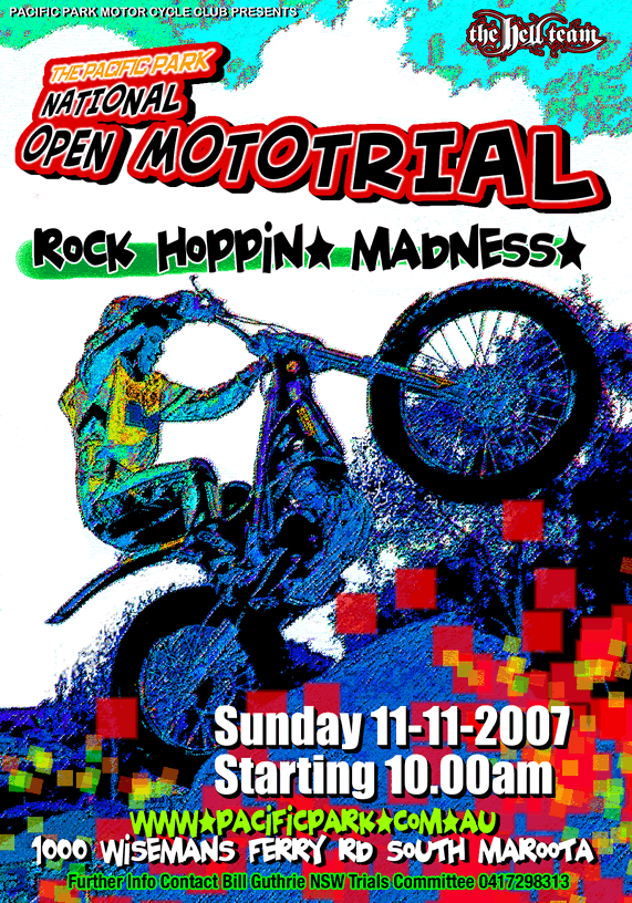 And we'd love as many late entries as possible, if anyone is unsure, just remember as Dave says....... "It never rains at Pacific Park"! Personally I think he's fibbing, but please come and support our last trial of the year, and guarantee the support and big effort of all the organizers , and event sponsors, into 2008 and hopefully the Ozzy Titles in 2009 back at The Park.
