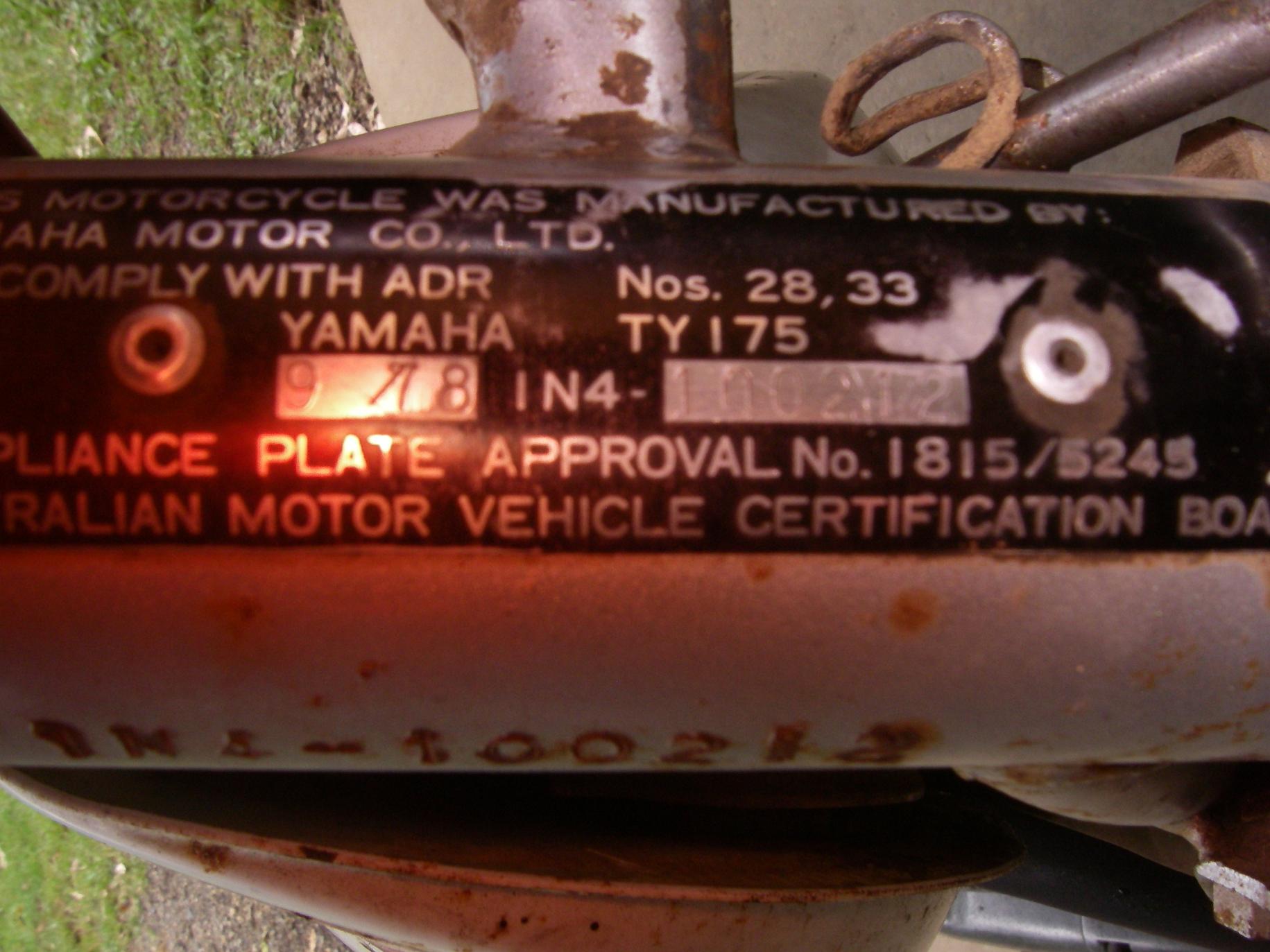 Nice to know your blood is oxygenated Greg. The ADR plate photo is great and I see it also shows the frame number stamping in the same shot. It may well be a JE. There is a listing of the various common and uncommon TY175 models in an early issue of VMX magazine. Unless someone else wants to look the number up, I will - as a nice bit of bedtime reading tonight.