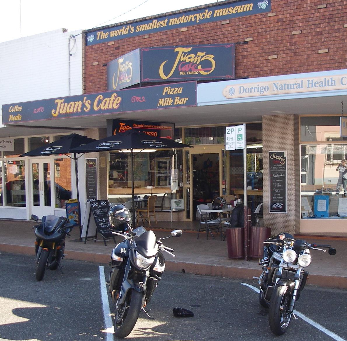 Just following up on the Bultaco at Juan's Cafe, here is a link to http://www.coffsharbourmotorcycleclub.com