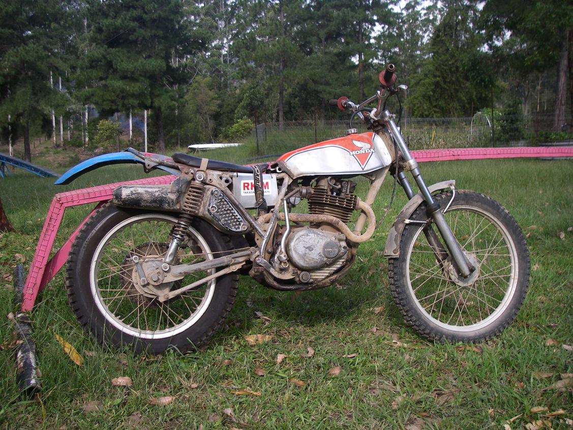 Just thought I would share my latest aquision which is a TL250 in working order, but certainly needs some work for $300.00. This is the second time I have owned this bike, the first time it was living under a tarp at the back of a beachfront house north of Coffs with the exhaust rusted away. The owner had an exhaust off a CT200 and a box of odd bits, all for $350.00. A few hours were spent repairing the exhaust and getting it all working. A couple of rides to fine tune a few things and I sold it to a young bloke to learn how to ride. This wouldn`t be my first choice for a learner, however he was pretty strong and the asking price of $500.00 was within the reach of a schoolboy. Well the TL got heaps of use until he updated to another one of my old bikes, a TY250R.