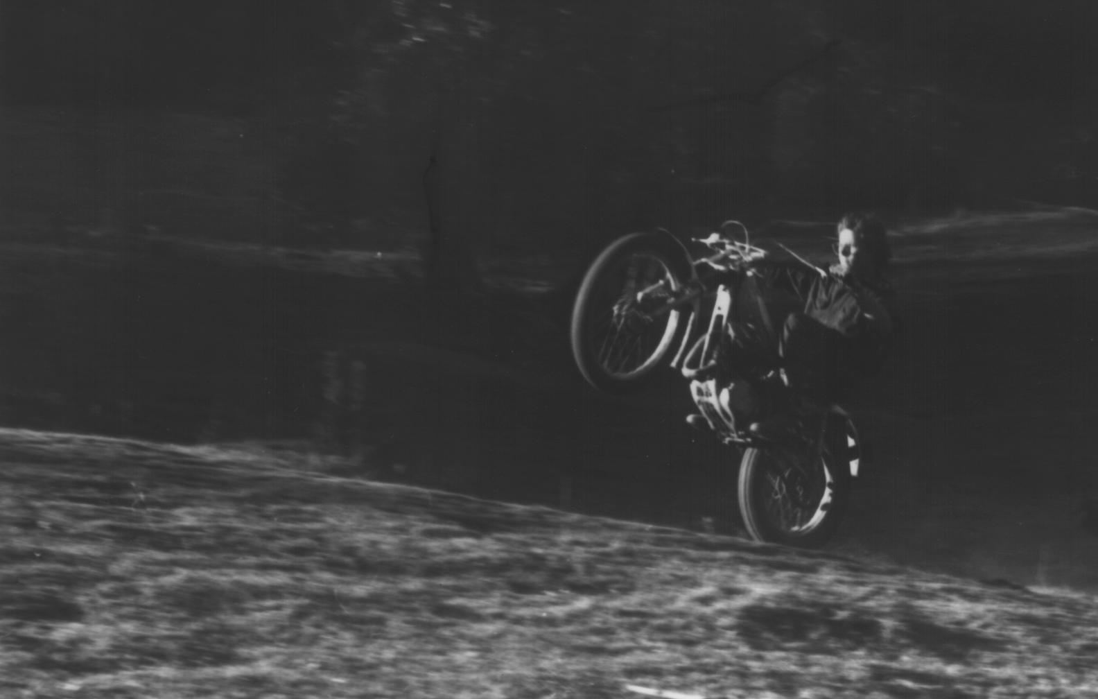 The B&W photo is me on my recently acquired second-hand TY175B in 1976 at Ron Boyles "upper" Lacey's Creek property near Dayboro, the afternoon before a Northern Districts Motorcycle Trials Club trial. I was 17 years old and dead keen on mastering wheelies. Photo by John Heidemann.