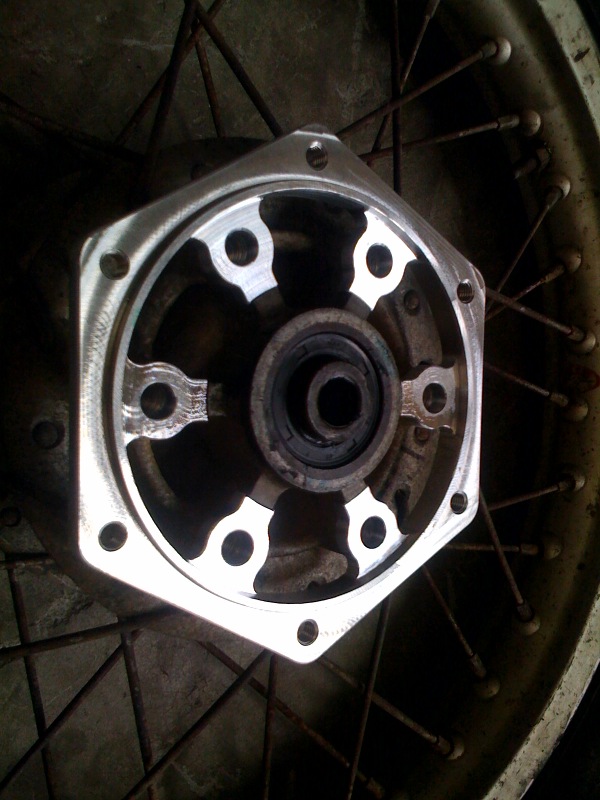 The reason I used the KX sprocket was not just because it had the same spline front,but also the bolt holes for those rear sprockets were set well out from the center giving room to adapt.
