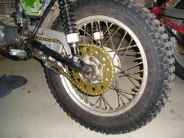 Nice job Russ. The KT is a bit of a problem child for sprockets. Getting a small enough front KT sprocket for 428 chain is hard too. The fronts are easy in 520 chain like you found. I do know that there are both 428 chain and 520 chain dished rear sprockets made for the TY250 so that one is covered already. The KT and the TY250 are the only popular twinshock trials bikes I have come across with dished rears.